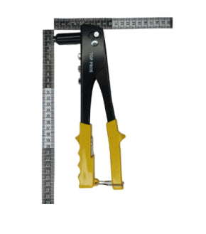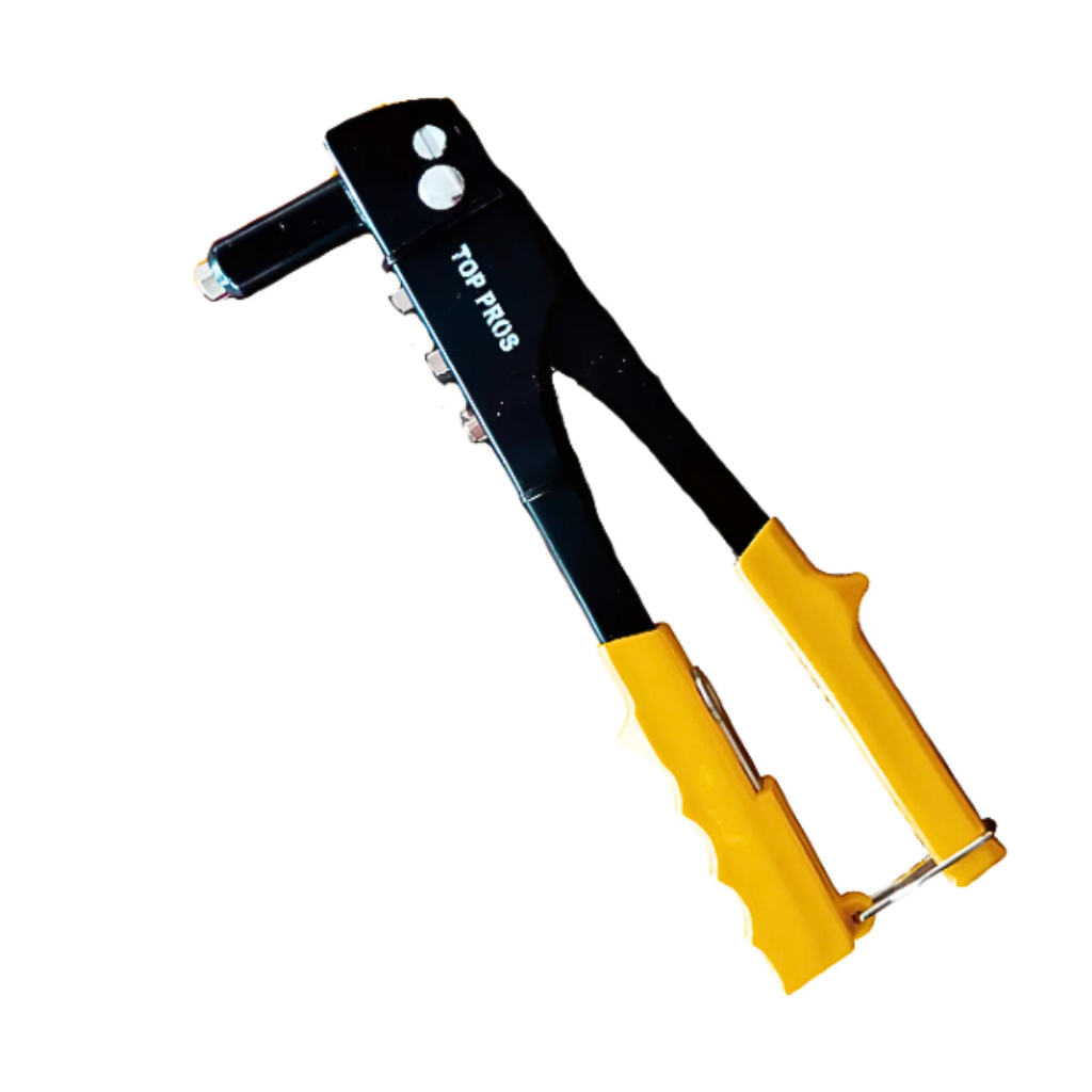 O alicate de rebites é feito em aço carbono e plástico, com chave de troca inclusa. Possui mecanismo Que aperta o rebite em outra estrutura fazendo a união delas, de forma segura. É usado na indústria, construção e em projetos de bricolagem, cirando conexão permanente Entre materiais como metal, plástico e couro, de maneira simples e prática. Útil em projetos em que se tem acesso a um dos lados.