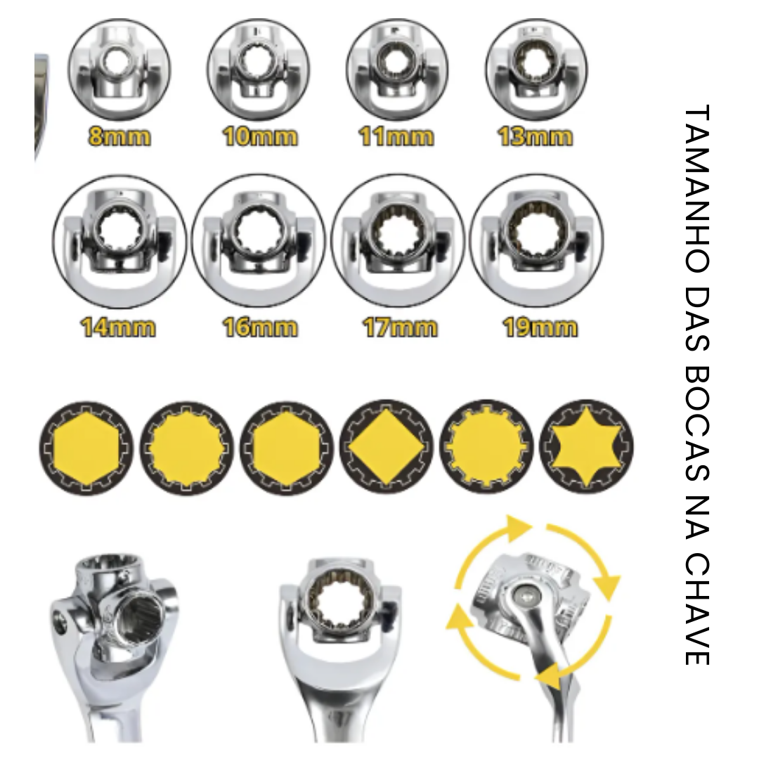 Transforme sua caixa de ferramentas com a Chave Universal 48EM1! Este incrível produto é essencial para qualquer profissional ou qualquer necessidade com chave catraca/sextavada. Projetada para oferecer máxima funcionalidade e durabilidade.