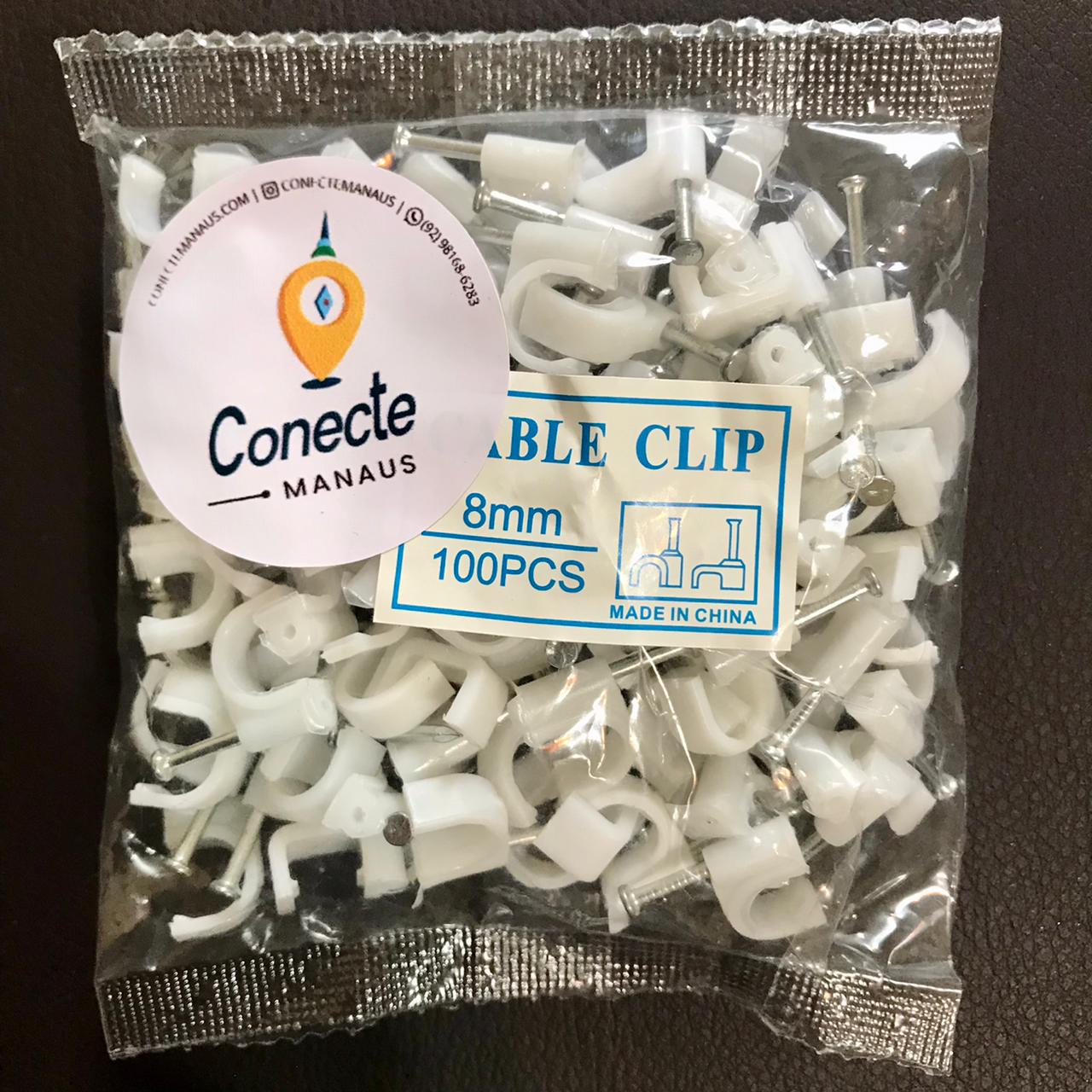 GRAMPO FIXA FIO COAXIAL 8MM - COM 100 PEÇAS