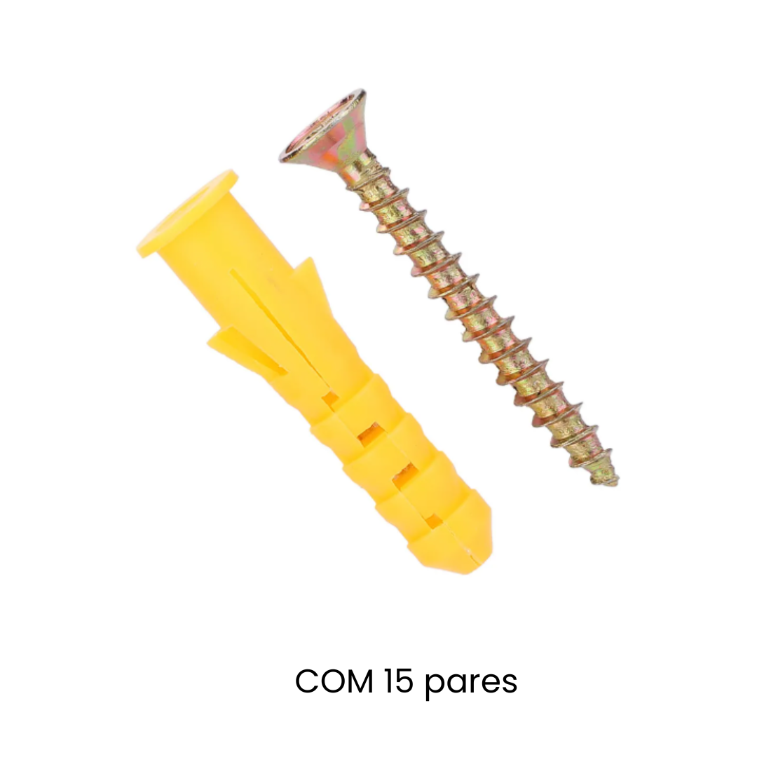Conteúdo da caixa: 15 buchas e 15 parafusos