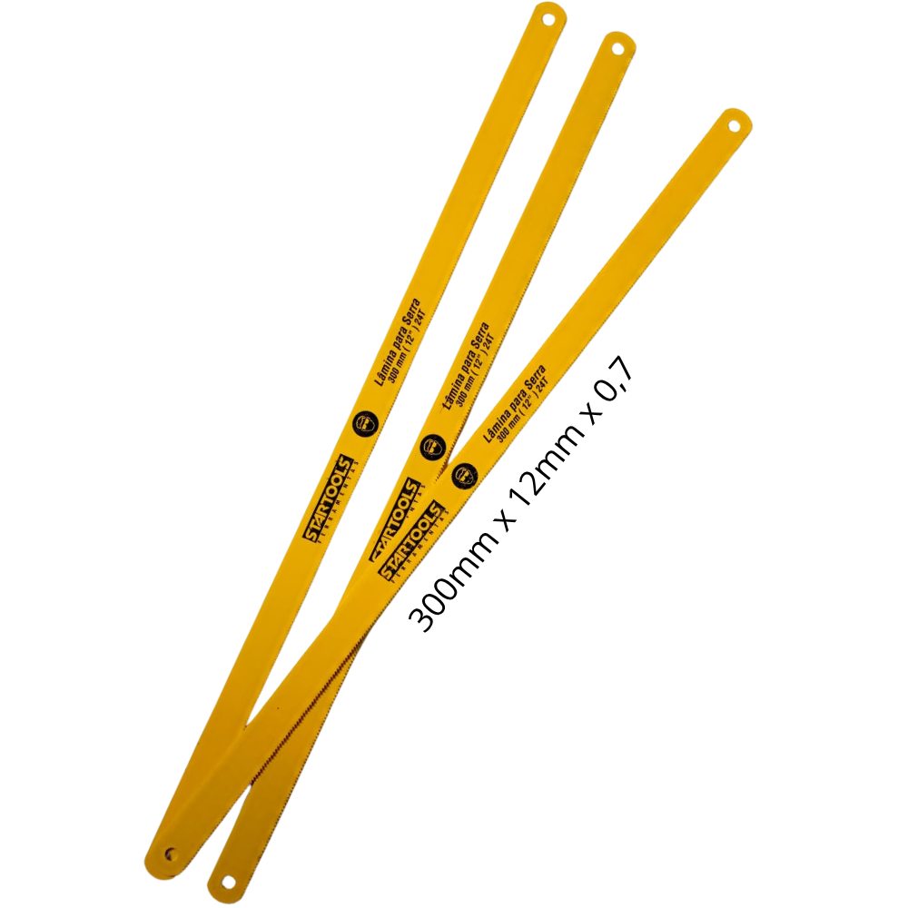 Ideal para profissionais e entusiastas do corte. As lâminas afiadas tem de 12 polegadas, fabricadas em aço carbono de alta qualidade, garantindo durabilidade e eficiência. Com dimensões de 300mm x 12mm x 0,7mm e um modelo 24T, estas lâminas possuem 24 dentes por polegada, proporcionando cortes precisos em uma variedade de materiais. São compatíveis com serra de arco e são especialmente projetadas para cortar canos de PVC, canos de cobre, ferragens, ferro e madeira.